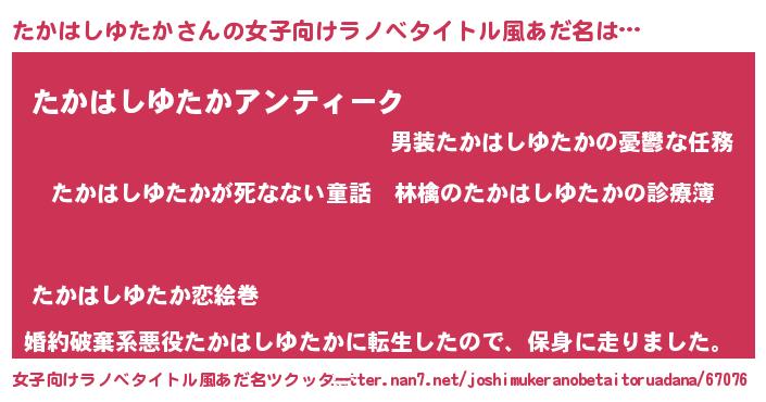 | 男性向けラノベタイトル風あだ名 | 『魔弾の王とたかはしゆたか』 |