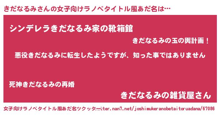 | 男性向けラノベタイトル風あだ名 | 『この素晴らしい世界にきだなるみを!』 |