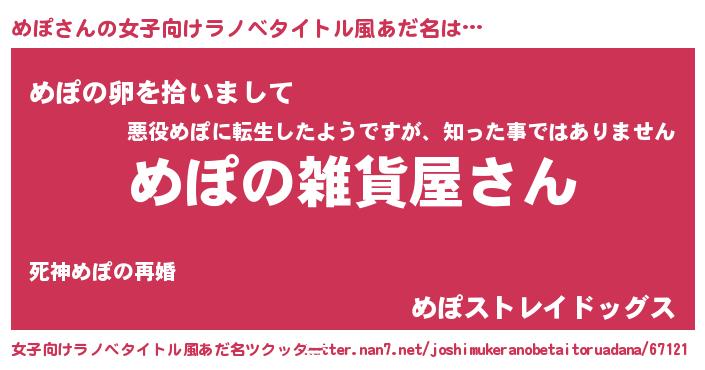 | 意味不明あだ名 | 『めぽフォーエバー』『自称めぽ』 |