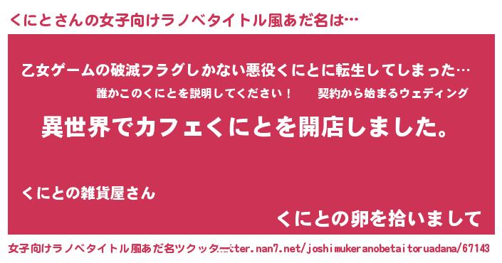 | 胡散臭い通販商品みたいなあだ名 | 『前代未聞の健康食品…その名も「くにと」』 |