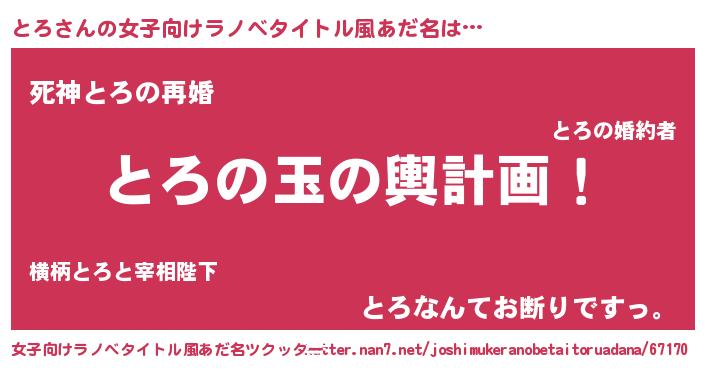| ヒーロー風カッコイイあだ名 | 『天空の使者とろ』『超時空戦士トロ』 |