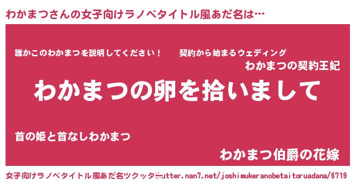 | 男性向けラノベタイトル風あだ名 | 『ダンジョンにわかまつを求めるのは間違っているだろうか』 |