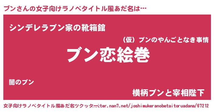 | 男性向けラノベタイトル風あだ名 | 『おまえをオタクにしてやるから、俺をブンにしてくれ! 』 |
