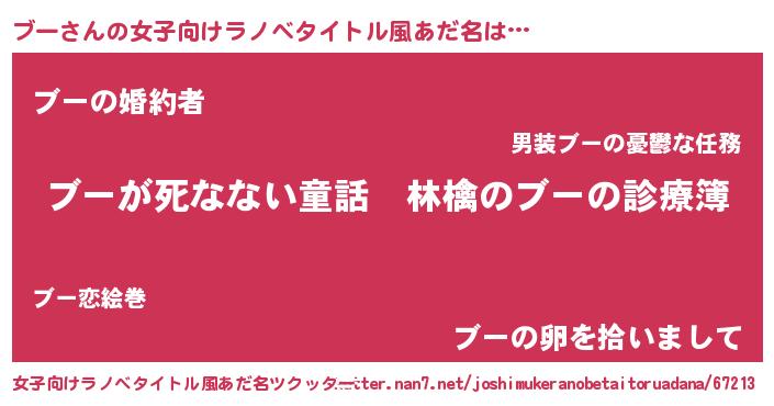 | 男性向けラノベタイトル風あだ名 | 『魔弾の王とブー』 |