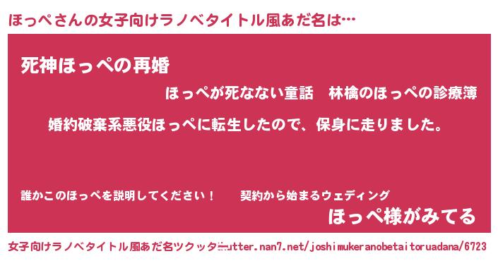 | 男性向けラノベタイトル風あだ名 | 『転生したらほっぺだった件』 |