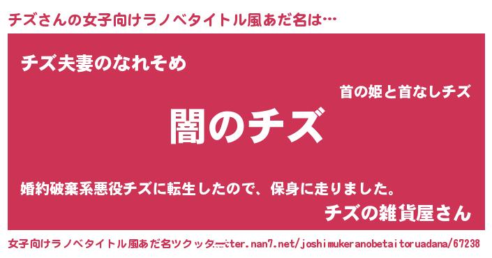| 男性向けラノベタイトル風あだ名 | 『Re:チズから始める異世界生活』 |