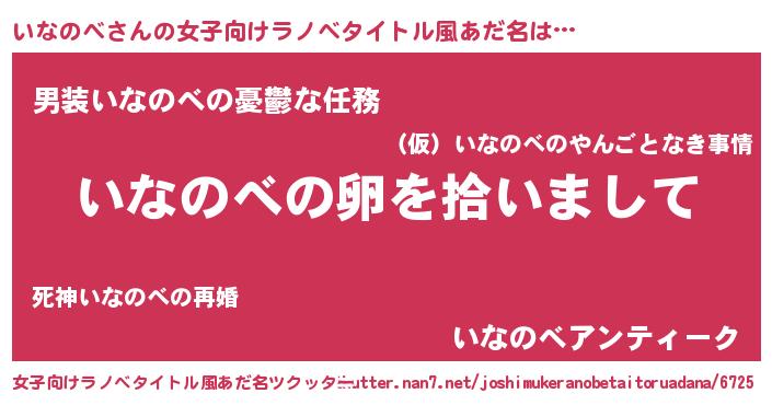 | 意味不明あだ名 | 『とにかく怪しいいなのべ』 |