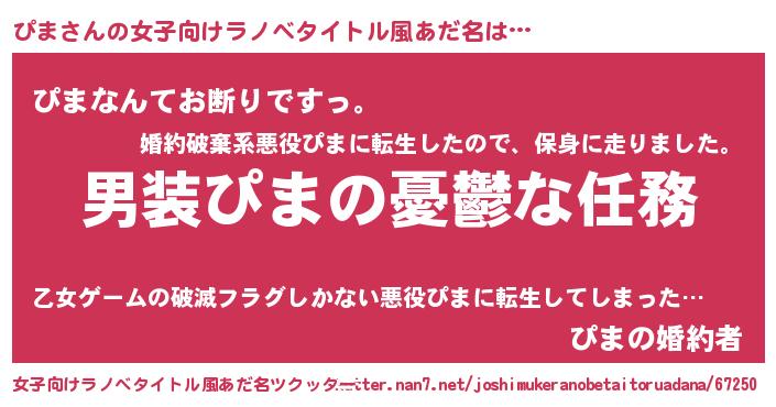 | 男性向けラノベタイトル風あだ名 | 『冴えないぴまの育てかた』 |