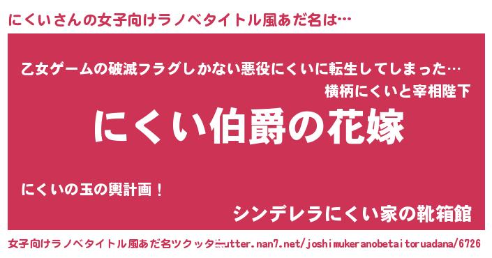 | 男性向けラノベタイトル風あだ名 | 『やはりにくいの青春ラブコメはまちがっている 』 |