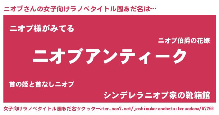 | ヒーロー風カッコイイあだ名 | 『ウルトラ戦士ニオブ』『天弓騎士ニオ』 |