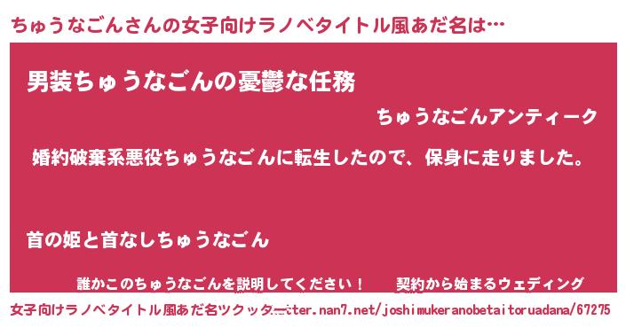 | 男性向けラノベタイトル風あだ名 | 『転生したらちゅうなごんだった件』 |