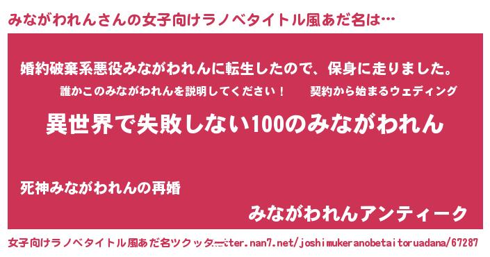 | 男性向けラノベタイトル風あだ名 | 『みながわれんという概念が存在しない退屈な世界 』 |
