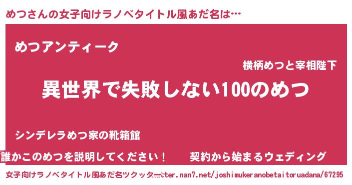 | 男性向けラノベタイトル風あだ名 | 『めつという概念が存在しない退屈な世界 』 |