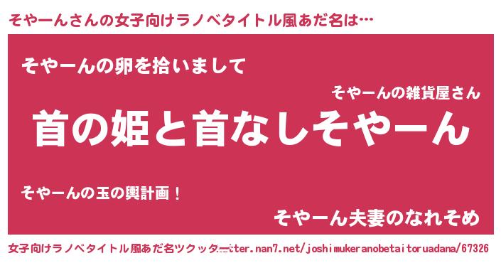 | ヒーロー風カッコイイあだ名 | 『暗黒騎士ソヤ』『愛の使者そやーん』 |