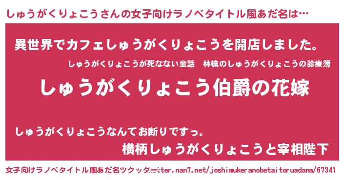 | ファンタジー風あだ名 | 『エターナルシュウガクリョコウー』 |