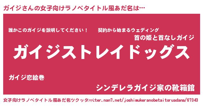 | 男性向けラノベタイトル風あだ名 | 『Re:ガイジから始める異世界生活』 |