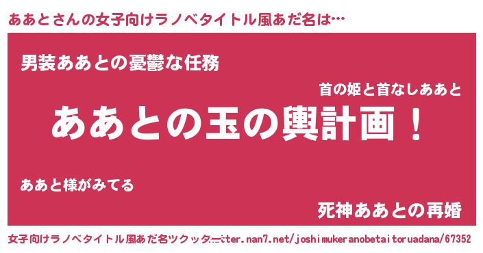 | 男性向けラノベタイトル風あだ名 | 『転生したらああとだった件』 |
