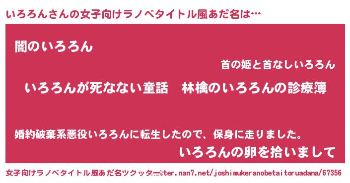 | 男性向けラノベタイトル風あだ名 | 『魔弾の王といろろん』 |