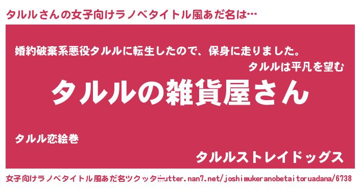 | 胡散臭い通販商品みたいなあだ名 | 『幸せが訪れる高級そうな皿…その名も「タルル」』 |
