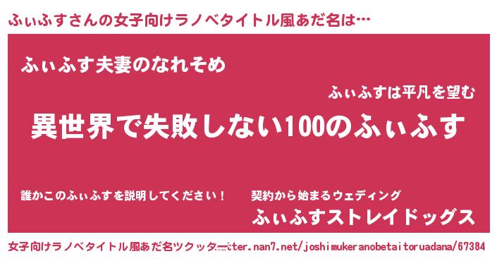 | 男性向けラノベタイトル風あだ名 | 『ふぃふすという概念が存在しない退屈な世界 』 |