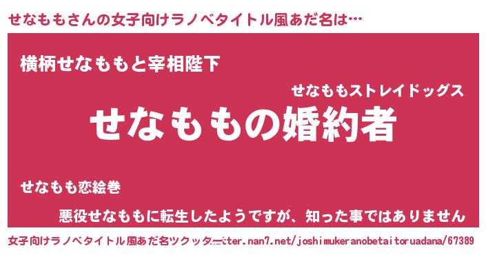 | ファンタジー風あだ名 | 『エターナルセナモモー』『ゼセナトゥ』 |