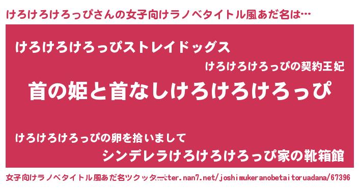 | 男性向けラノベタイトル風あだ名 | 『はたらくけろけろけろっぴさま!』 |