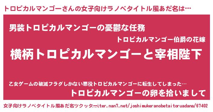 | 料理風あだ名 | 『秋冬にほっこり◇トロピカルマンゴーのなめこおろし煮』 |