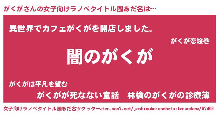 | 男性向けラノベタイトル風あだ名 | 『Re:がくがから始める異世界生活』 |