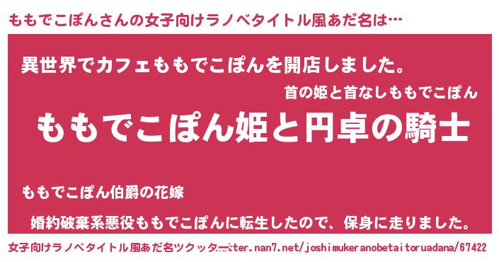 | ファンタジー風あだ名 | 『モモフェル』『モモディッシュ』 |