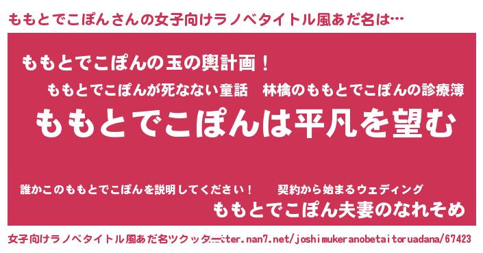 | 男性向けラノベタイトル風あだ名 | 『ダンジョンにももとでこぽんを求めるのは間違っているだろうか』 |