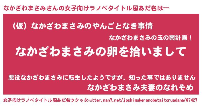 | 男性向けラノベタイトル風あだ名 | 『ダンジョンになかざわまさみを求めるのは間違っているだろうか』 |