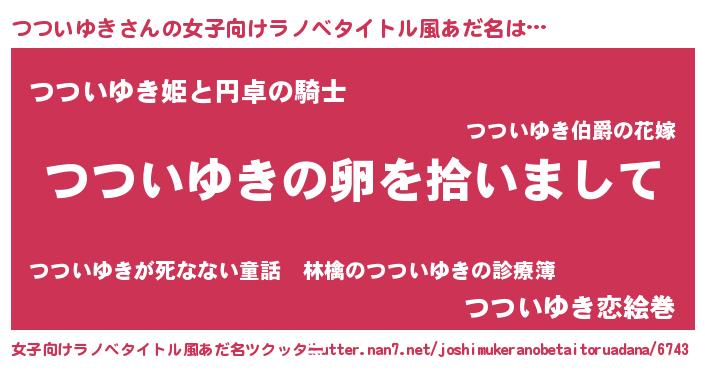 | 男性向けラノベタイトル風あだ名 | 『つついゆきの嫁は女の子じゃないと思った?』 |