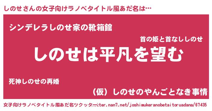 | 意味不明あだ名 | 『とにかく怪しいしのせ』『自称しのせ』 |