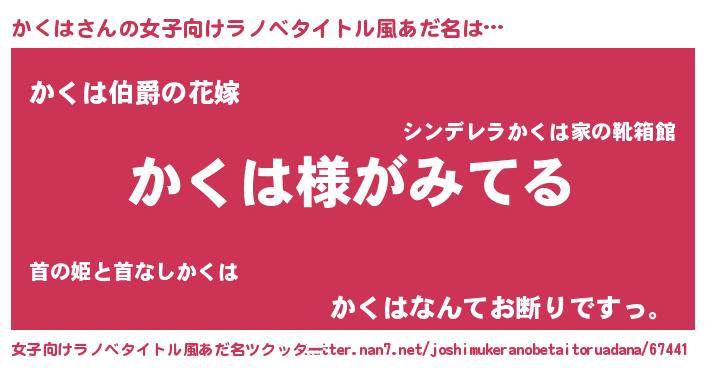 | 男性向けラノベタイトル風あだ名 | 『かくはの嫁は女の子じゃないと思った?』 |