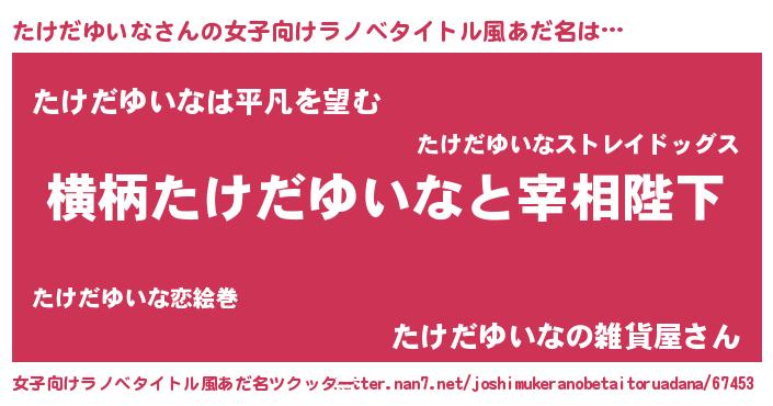 | 男性向けラノベタイトル風あだ名 | 『たけだゆいなに滅ぼされるだけの簡単なお仕事です』 |