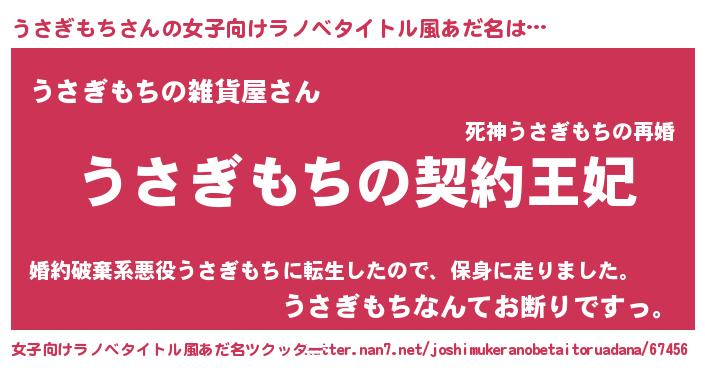 | 胡散臭い通販商品みたいなあだ名 | 『来世でも幸せになれる健康食品…その名も「うさぎもち」』 |