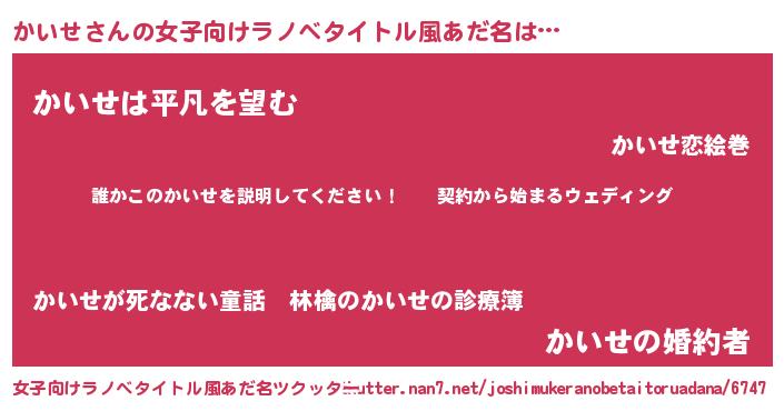 | 男性向けラノベタイトル風あだ名 | 『カイセアートオンライン』 |