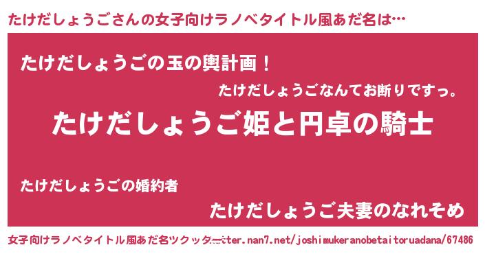 | 胡散臭い通販商品みたいなあだ名 | 『モテモテ間違いなしブレスレット…その名も「たけだしょうご」』 |
