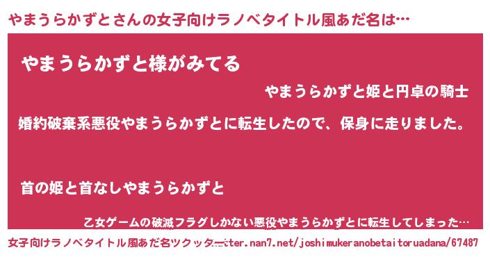 | 男性向けラノベタイトル風あだ名 | 『転生したらやまうらかずとだった件』 |
