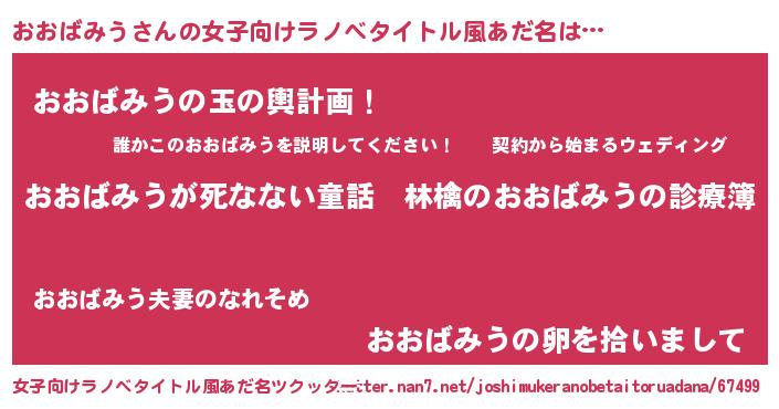 | 意味不明あだ名 | 『住所不定無職おおばみう(71歳)』 |