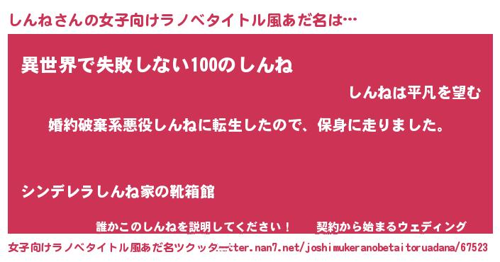 | 男性向けラノベタイトル風あだ名 | 『転生したらしんねだった件』 |