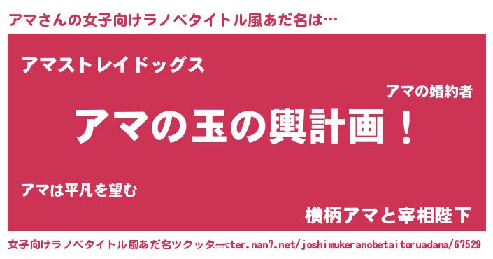 | 男性向けラノベタイトル風あだ名 | 『転生したらアマだった件』 |