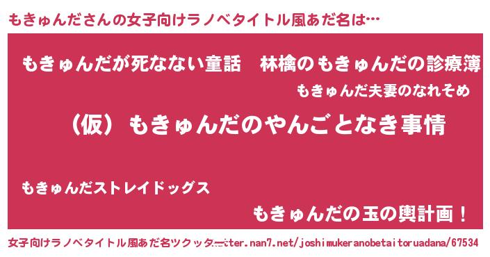 | 胡散臭い通販商品みたいなあだ名 | 『必ず成功する水晶球…その名も「もきゅんだ」』 |