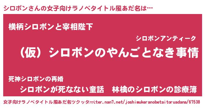 | 男性向けラノベタイトル風あだ名 | 『シロボンの憂鬱』『魔弾の王とシロボン』 |