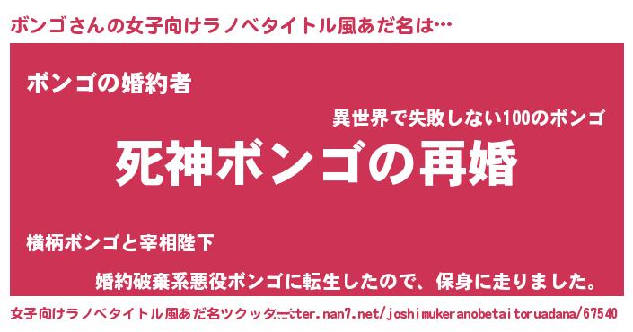 | 自動車の名前っぽいあだ名 | 『ボンR』『ボスラー』『デミボ』 |