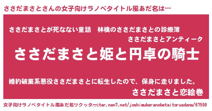 | 男性向けラノベタイトル風あだ名 | 『ササダマサトアートオンライン』 |