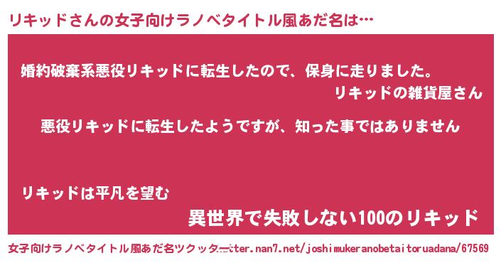 | ヒーロー風カッコイイあだ名 | 『仮面リキダー』『ネオリキッド』 |