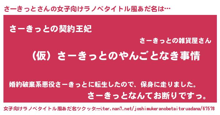 | 男性向けラノベタイトル風あだ名 | 『さーきっとの憂鬱』 |