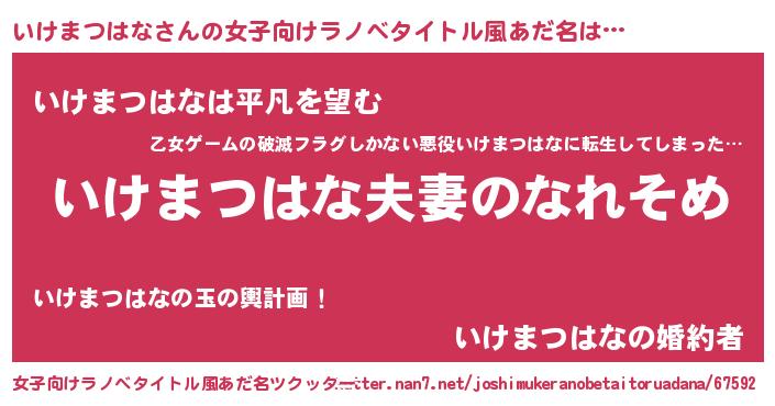 | 胡散臭い通販商品みたいなあだ名 | 『100人中100人が認めたイリジウム磁石…その名も「いけまつはな」』 |