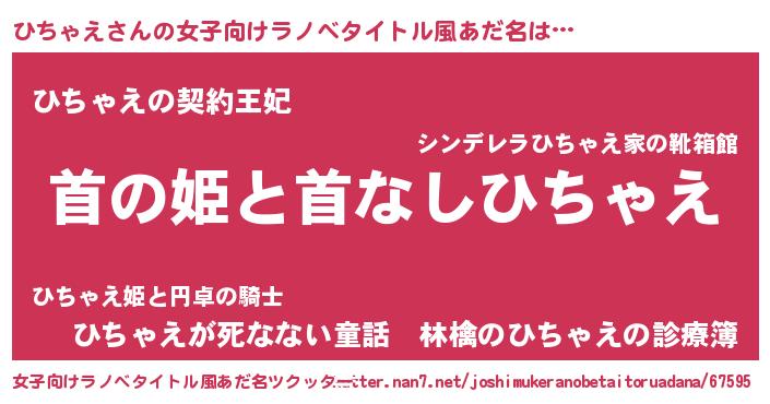 | 男性向けラノベタイトル風あだ名 | 『はたらくひちゃえさま!』 |